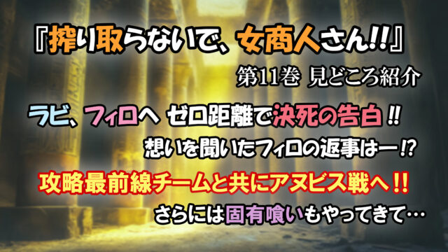 【搾り取らないで、女商人さん!! 第11巻 見どころ紹介】ラビ、フィロへ決死の告白♡&固有喰いから母を救出!!