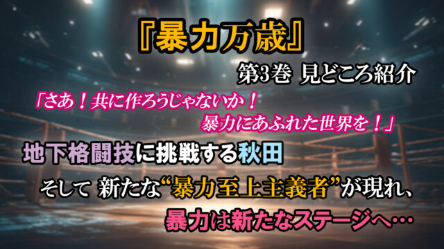 【暴力万歳 第3巻 見どころ紹介】地下格闘技に出場する秋田正道!そして暴力は新たなステージへ!?