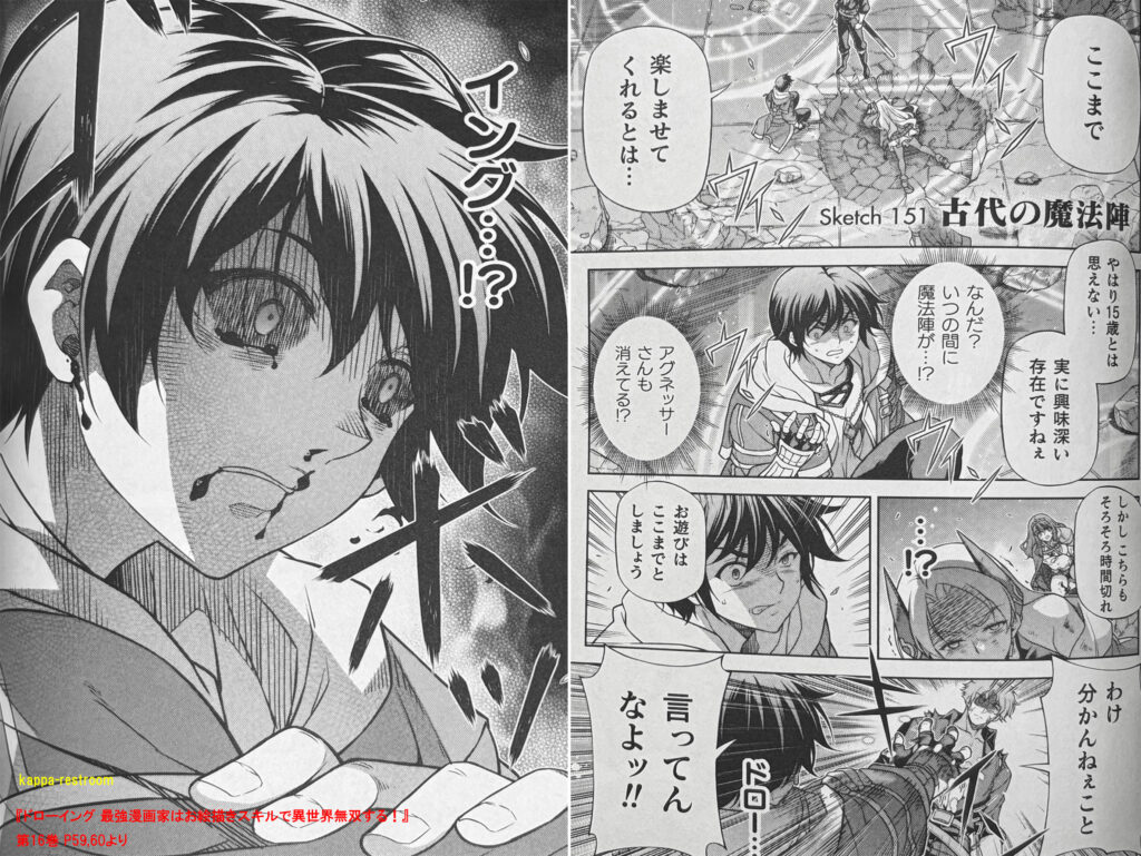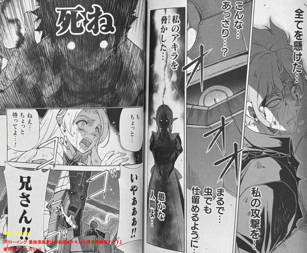 『ドローイング 最強漫画家はお絵描きスキルで異世界無双する!』第16巻 P128,129よりマジで残酷すぎるやられ方でした。