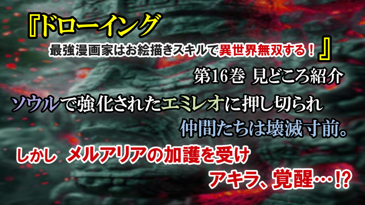 今回はコミックヴァルキリーにて連載されている漫画 ヴァルキリーコミックス『ドローイング 最強漫画家はお絵描きスキルで異世界無双する!』第16巻の見どころ紹介と感想を書かせていただきます。