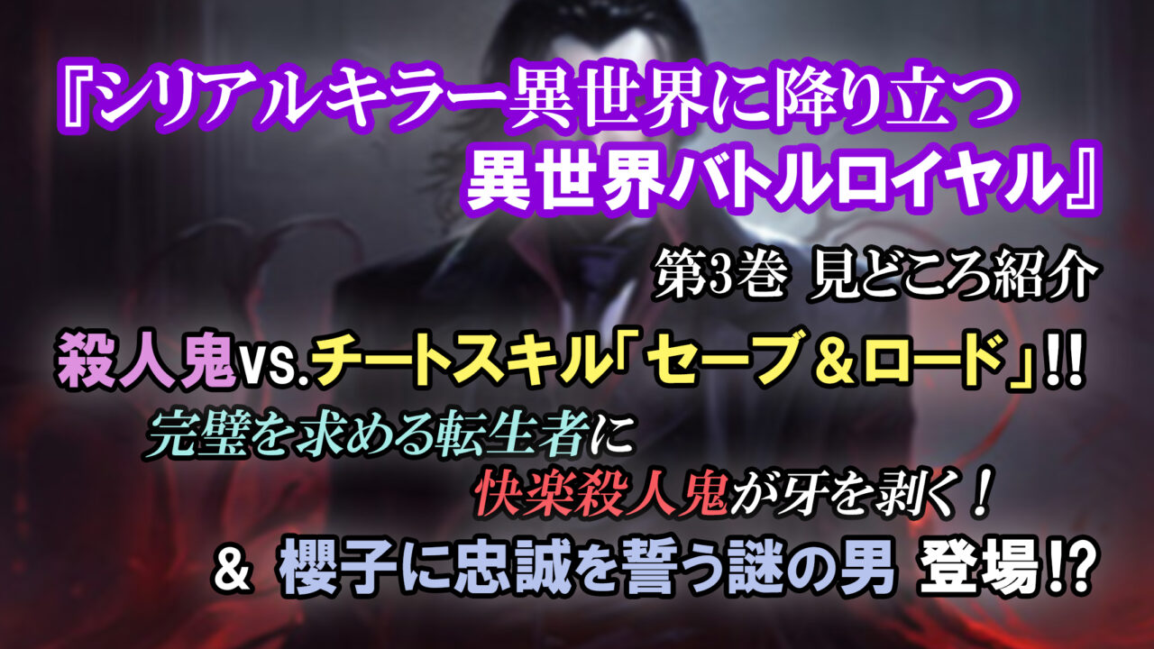 今回はヤングキングで連載中の漫画 YKコミックス『シリアルキラー異世界に降り立つ 異世界バトルロイヤル』第3巻の見どころ紹介や感想を書かせていただきます。