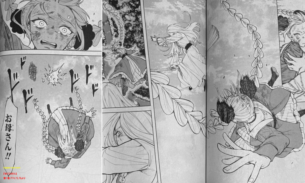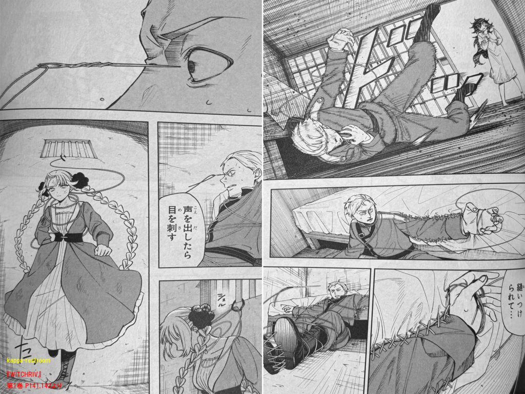 『WITCHRIV』第1巻 P141,142より傷口を縫うこともできるのであれば攻撃&回復がこなせるということですね。