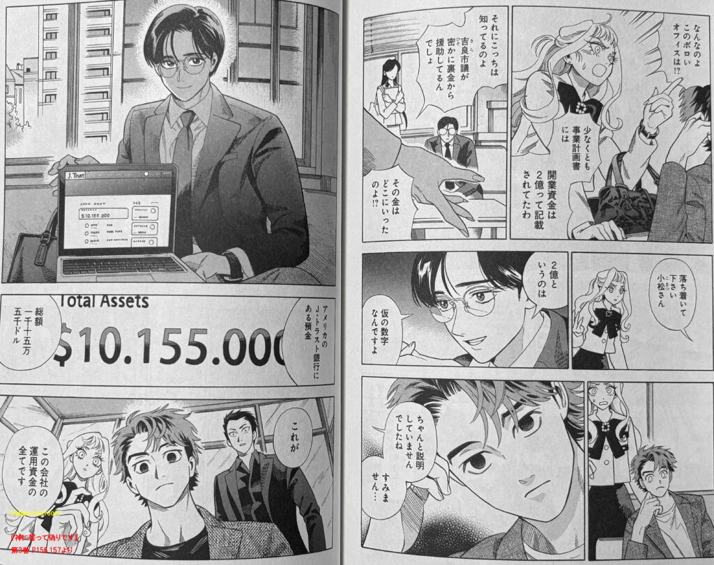 『神に誓って偽りです』第3巻 P156,157よりさらに15億円の口座番号を教えると言って、担保金3億円も手に入れてしまいます。