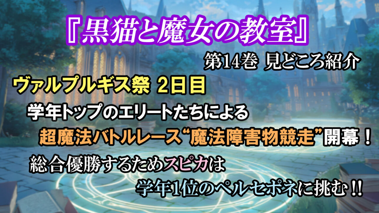 第14巻はヴァルプルギス祭の続きで、スピカとアリアが出場している“魔法障害物競走”が描かれました。
