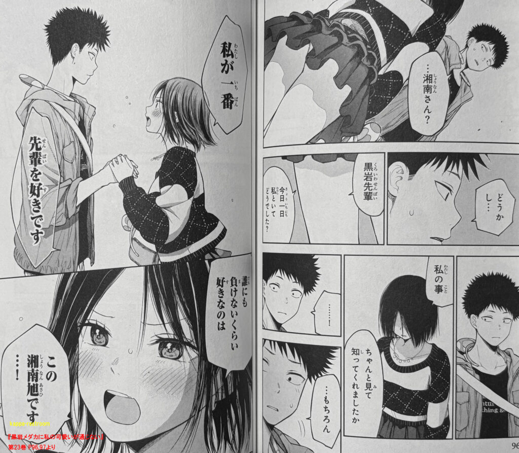 デート中に他の女のことを思い出すメダカに旭は「私が一番先輩を好きです。誰にも負けないくらい好きなのはこの湘南旭です…!」と再び告白してくれました。