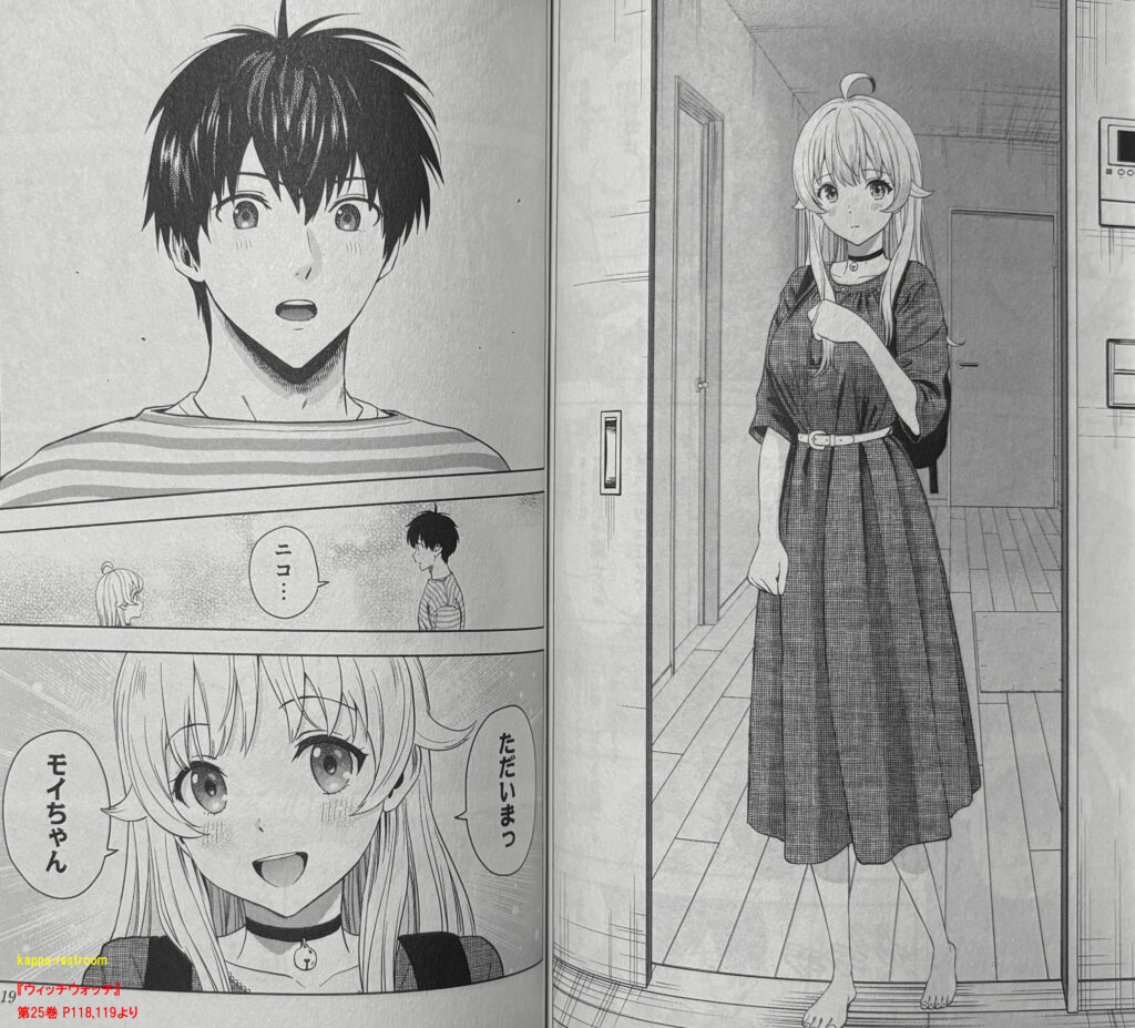 『ウィッチウォッチ』第25巻 P118,119よりニコと再会したモリヒトはあの日の告白の返事をするのだが…