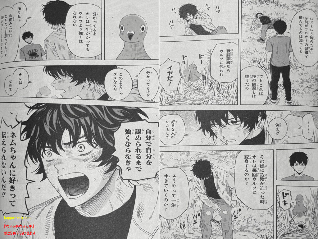 『ウィッチウォッチ』第25巻 P39,40よりこのシーンのケイゴはマジでカッコよかったです。