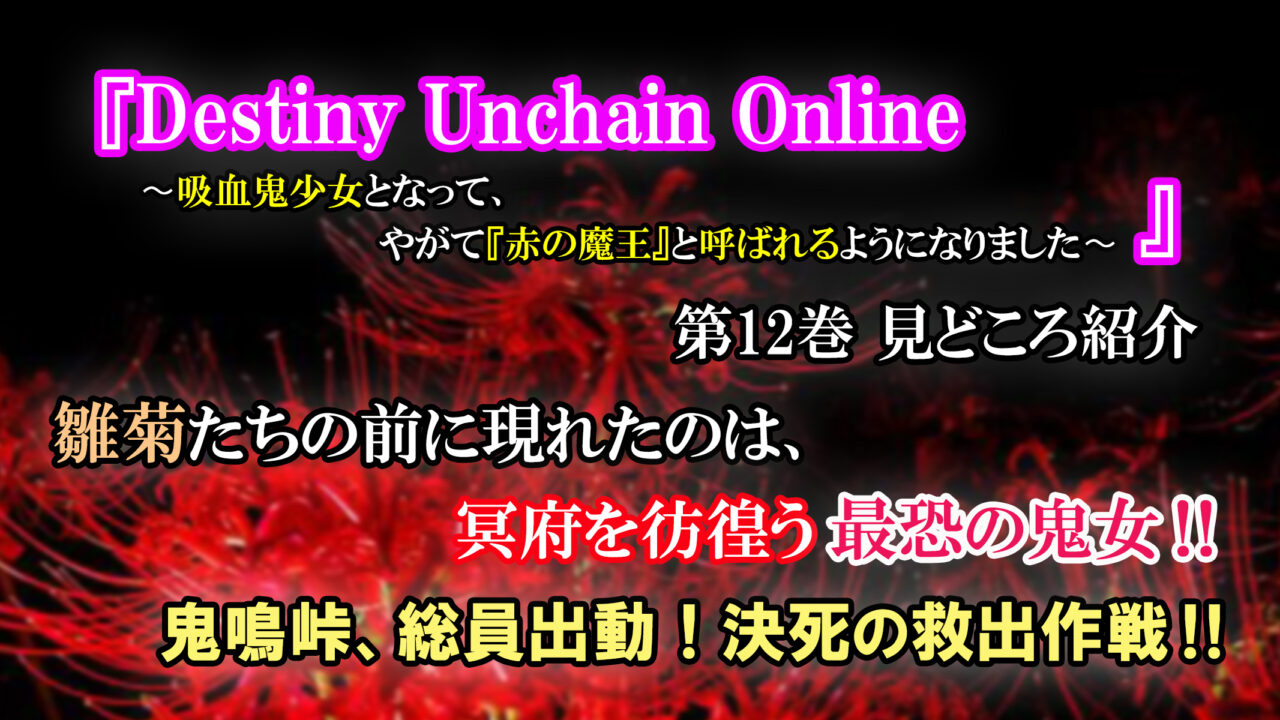 今回はマガジンポケットで連載中の漫画『Destiny Unchain Online 〜吸血鬼少女となって、やがて『赤の魔王』と呼ばれるようになりました〜』第12巻の見どころ紹介や感想を書かせていただきます。
