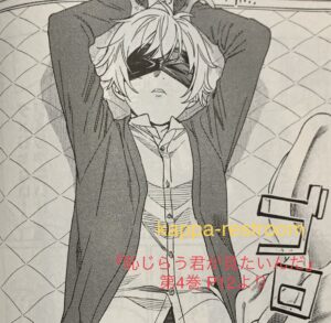 『恥じらう君が見たいんだ』第4巻 背表紙より明人くんに目隠しせず顔を見られていたら、絶対にイジられてたでしょうね。