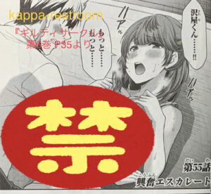 『ギルティサークル』第6巻 P35より沢屋たちが盛り上がっている頃、沢屋の友人である伊吹は彼が新歓合宿の時に誘った女子・水島茜と、そして沙織と付き合い始めた武田もマイちゃんと呼ばれる1年女子とお楽しみを始めるのであった。