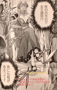 『ドローイング 最強漫画家はお絵描きスキルで異世界無双する!』第6巻 P65よりアキラも思ってましたが、この人女王ではなく魔王みたいな見た目でした。