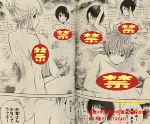 『黒岩メダカに私の可愛いが通じない』第11巻 P100,101よりテレビ電話ではメダカはみんなのパジャマ姿を堪能したり、ちょっと服がずれて肌が見えてしまうラッキース〇ベまで発動していました。