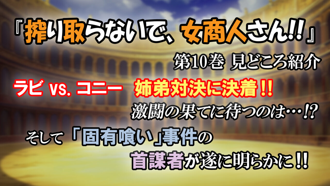 今回はWEB コミックガンマぷらすにて連載されている漫画 バンブーコミックス『搾り取らないで、女商人さん!!』第10巻の見どころや感想を書かせていただきます!!