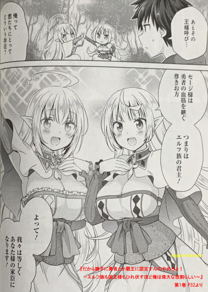 『だから勝手に勇者とか覇王に認定すんのやめろよ!~エルフ族も国王様もひれ伏すほど俺は偉大な役割らしい~』第1巻 P32よりアイナとエルフィは勇者様の古文書を解読すれば事情が分かるのでエルフの里に来てほしいとセージに言う。