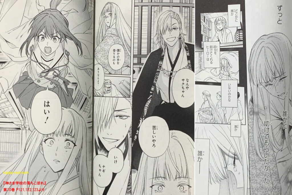 『神さま学校の落ちこぼれ』第10巻 P121,122,123より咲耶姫は月読命と結婚するのでは?という疑惑がありましたが、やはり咲耶姫は夜刀神と結婚してほしいですね。