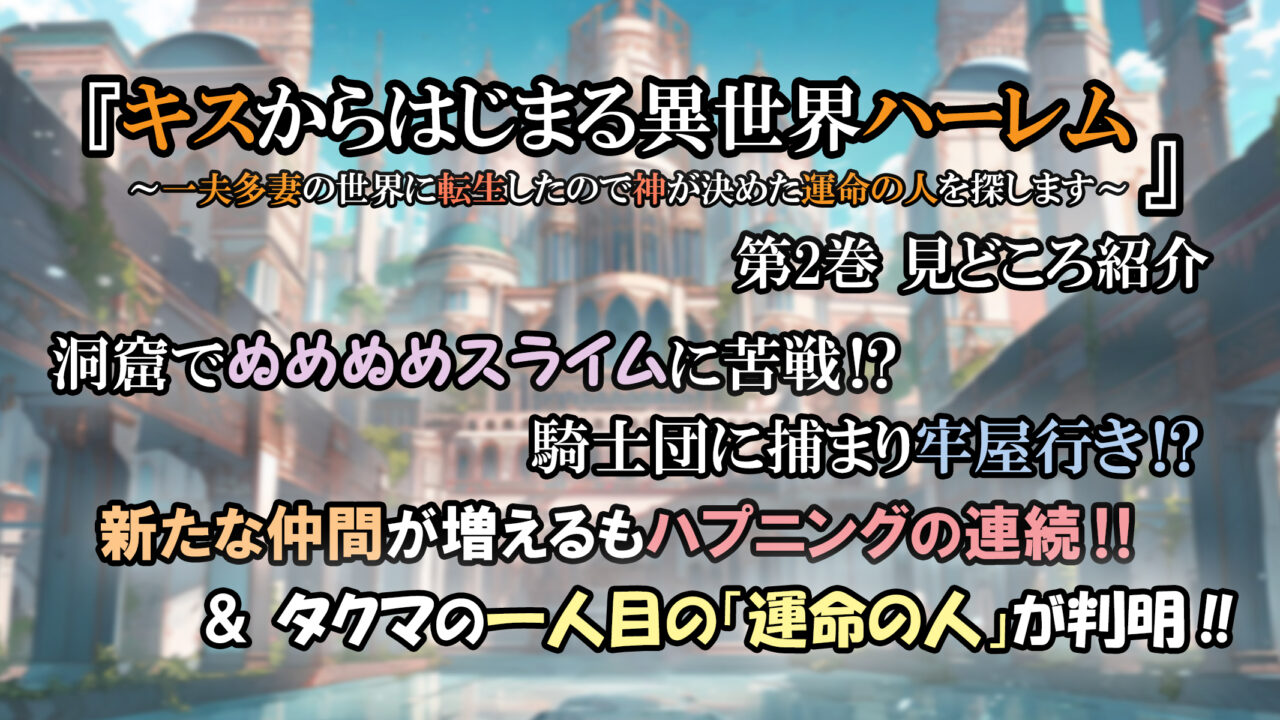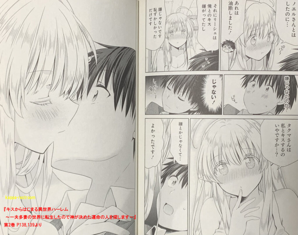 今回はWEBコミック「ストーリアダッシュ」で連載中の漫画 バンブーコミックス『キスからはじまる異世界ハーレム ~一夫多妻の世界に転生したので神が決めた運命の人を探します~』第2巻の見どころ紹介や感想を書かせていただきます。