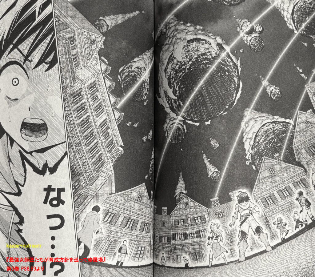 『最強女師匠たちが育成方針を巡って修羅場』第9巻 P88,89よりそして岩は人造魔物へと姿を変え人々を襲い始める。