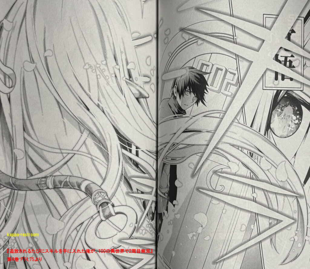 『追放されるたびにスキルを手に入れた俺が、100の異世界で2周目無双』第4巻 P74,75より
