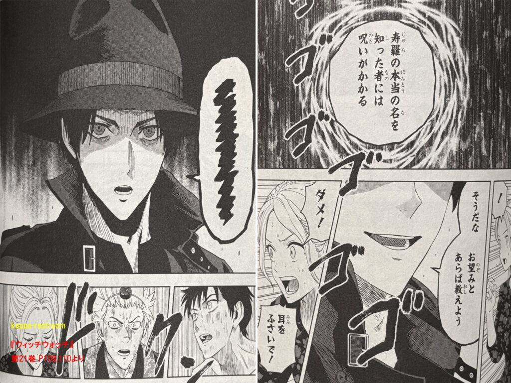 『ウィッチウォッチ』第21巻 P109,110より一体寿羅の本当の名前って何なのでしょうね?