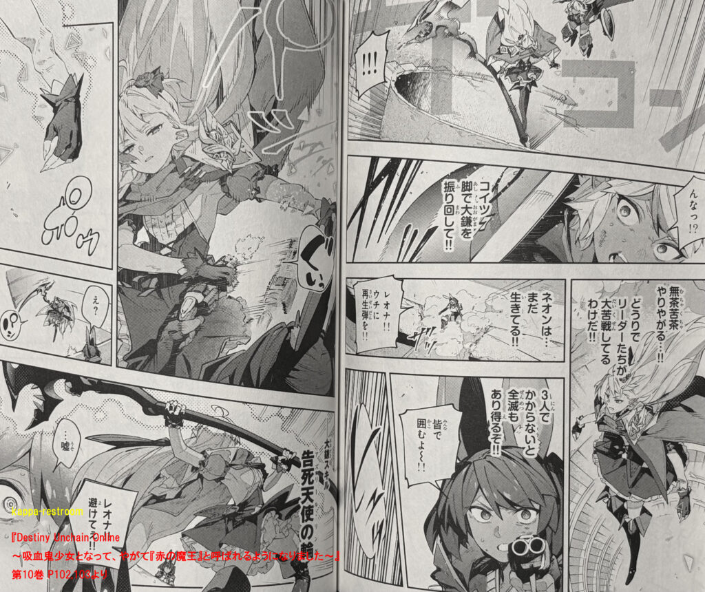 『Destiny Unchain Online 〜吸血鬼少女となって、やがて『赤の魔王』と呼ばれるようになりました〜』第10巻 P102,103より一瞬の判断力とそれを行動に移せる身体能力がバケモノすぎます。