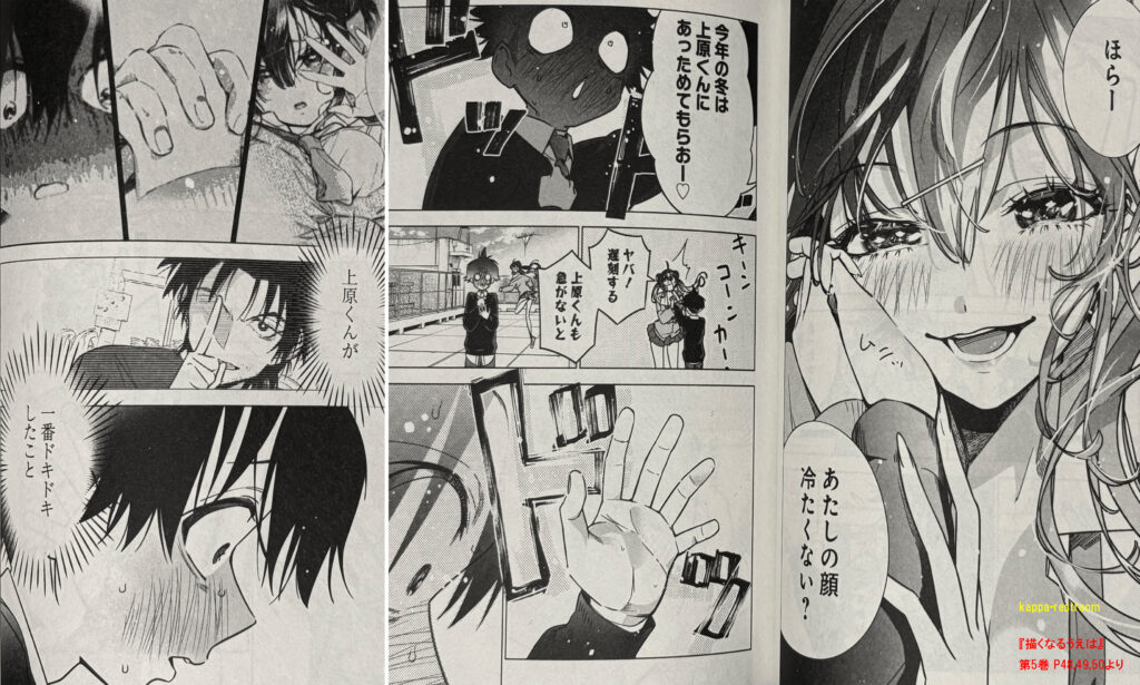 第5巻のラストでは先に漫画家デビューを果たした勇紀にニーナがほっぺにキスをしてくれました。