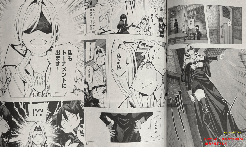 フレイユは補欠としてシルキィたちのチームに入り、シルキィはフレイユが闘うことがないように試合を進めようと考えていますが、これは話の流れ上どこかでフレイユが闘うことになりそうですね。