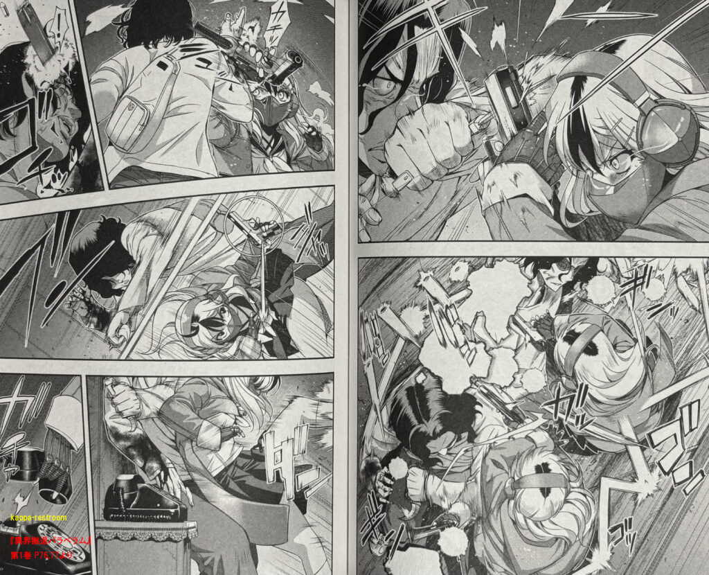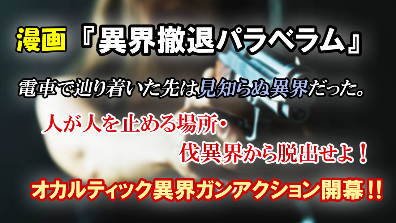 この作品は銃撃戦が巻き起こる謎の世界に迷い込んでしまった主人公がヒロインと共に元の世界に戻るために戦うオカルティック異界ガンアクション漫画です。