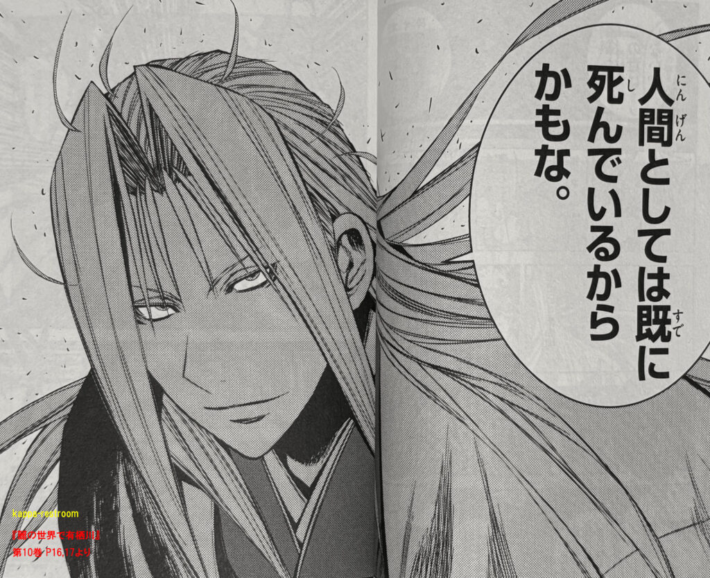 でも蘭丸はまだ諦めていないようで、スガワの「心の世界」に入り、『蝕む疫気』という術で何か仕掛けています。