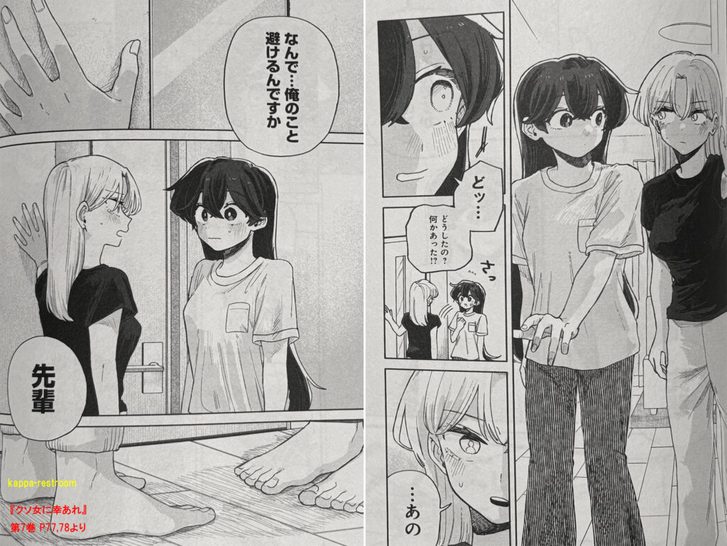 『クソ女に幸あれ』第7巻 P77,78より直に言われて意識せず普通に暮らせるように努力する感じにはなりましたが、たぶんまだ意識してますよね。