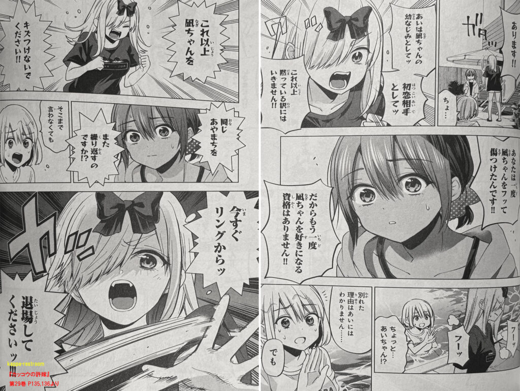 そこであいとひろがバチバチ状態になり、あいはひろに「あなたは一度凪ちゃんをフッて傷つけたんです!!だからもう一度凪ちゃんを好きになる資格はありません!!今すぐリングからッ退場してくださいッ!!」と言い放つのだった。