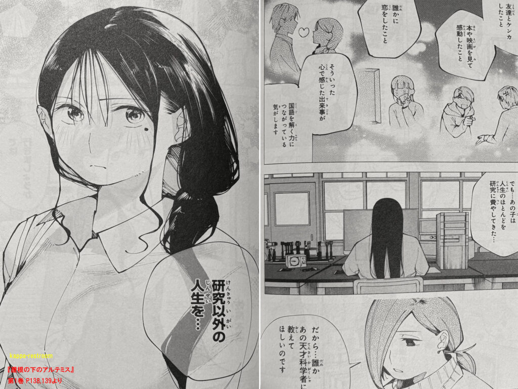 『屋根の下のアルテミス』第1巻 P138,139よりそのため彩葉先生は同級生に勉強を見てもらうことを提案したようです。