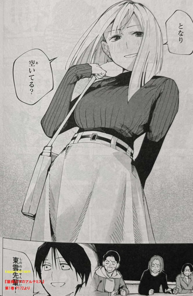 『屋根の下のアルテミス』第1巻 P172より彼女は授業料を払うためにバイトをしていて、佐ノ介と同じくお金のない苦学生のようです。