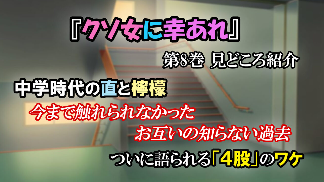 今回は少年ジャンプ+にて連載中の漫画 ジャンプコミックス『クソ女に幸あれ』第8巻の見どころ紹介や感想を書かせていただきます。