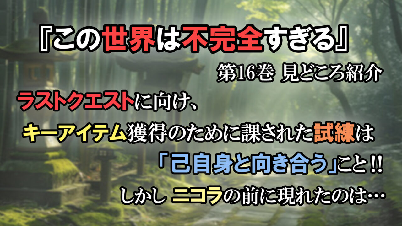 【この世界は不完全すぎる 第16巻 見どころ紹介】キーアイテムを手に入れる試練は「己と向き合う」こと!?そしてハガ達はラストクエストへ…!!