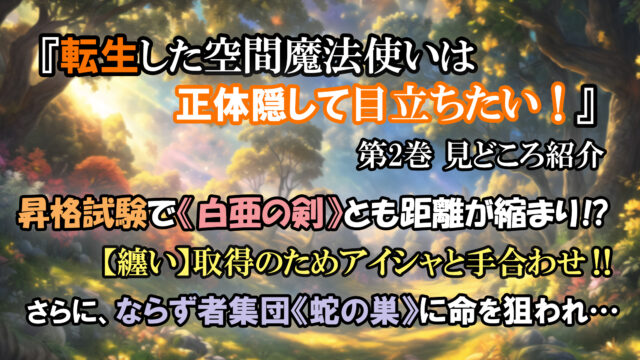【転生した空間魔法使いは正体隠して目立ちたい! 第2巻 見どころ紹介】昇格試験に最強パーティが同行!?&ならず者集団がトーリの命を狙う!!
